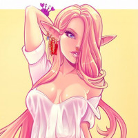 The image depicts an illustrated character that appears to be a fantasy-style elf with