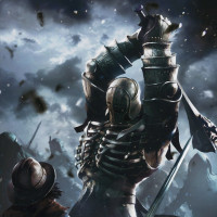 the video game "The Witcher 3: Wild Hunt." The central figure is a knight wearing armor and holding a sword, which suggests that he may be