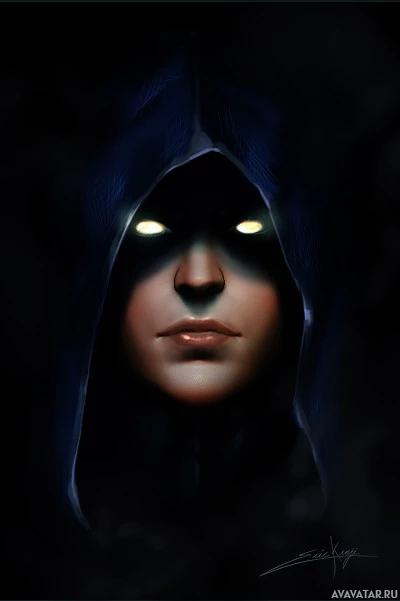 The image shows a stylized artwork of a character wearing a hood, which is commonly associated with figures such as robbers, vigilantes or superheroes. The character is depicted with