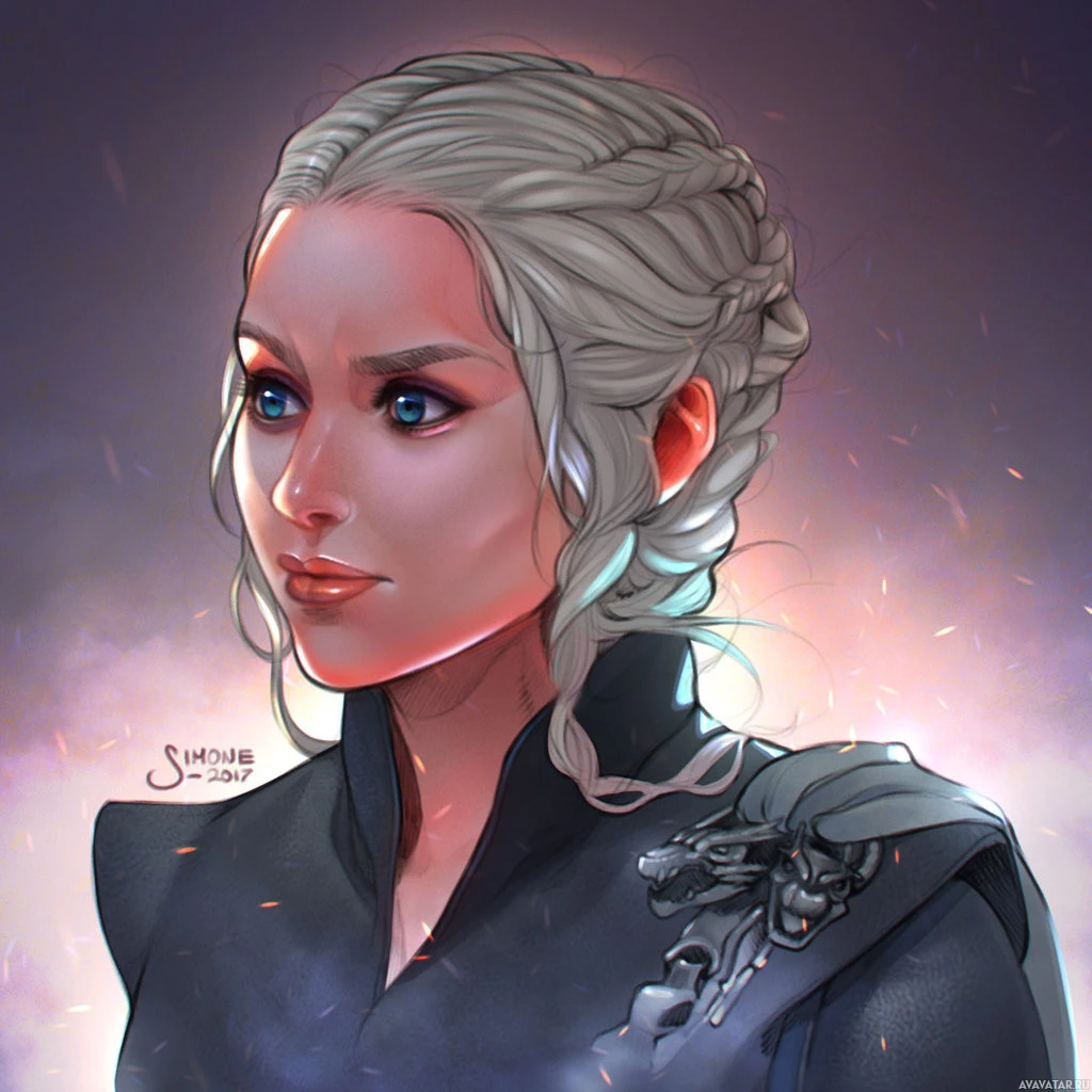 На картинке изображен персонаж из телесериала «Игра престолов». Она изображена со светлыми волосами, стилизованными в косы, в темной одежде и на фоне, который предполагает драматическую или интенсивную сцену. Выражение и одежда персонажа предполагают, что она может быть в положении авторитета в ее повествовательном контексте.