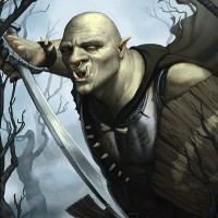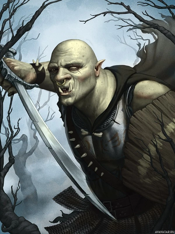 The image portrays a fantasy-themed character, commonly referred to as an orc. This creature is depicted in