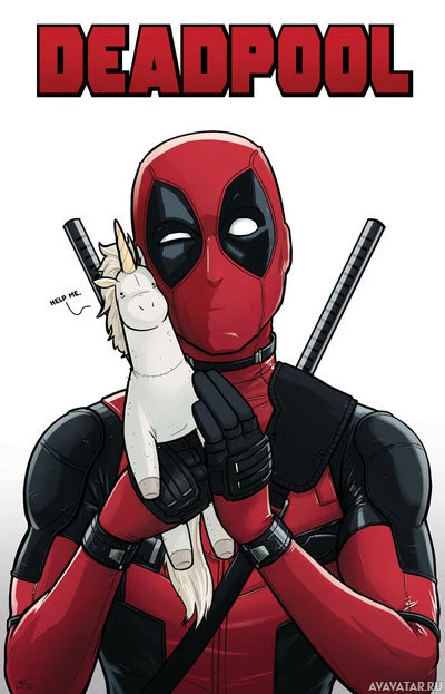 distressed expression on his face. Deadpool is known for his sarcastic humor and often breaks