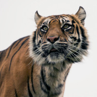 sharp teeth, and large size. The tiger in this picture appears to be looking directly at the camera with