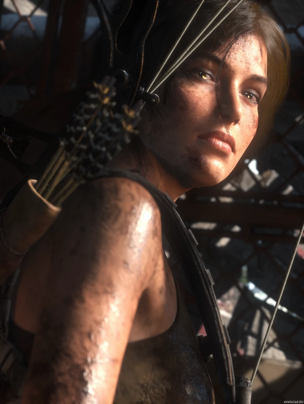 The image features a character who appears to be Lara Croft, the protagonist from the "Tomb Raider"