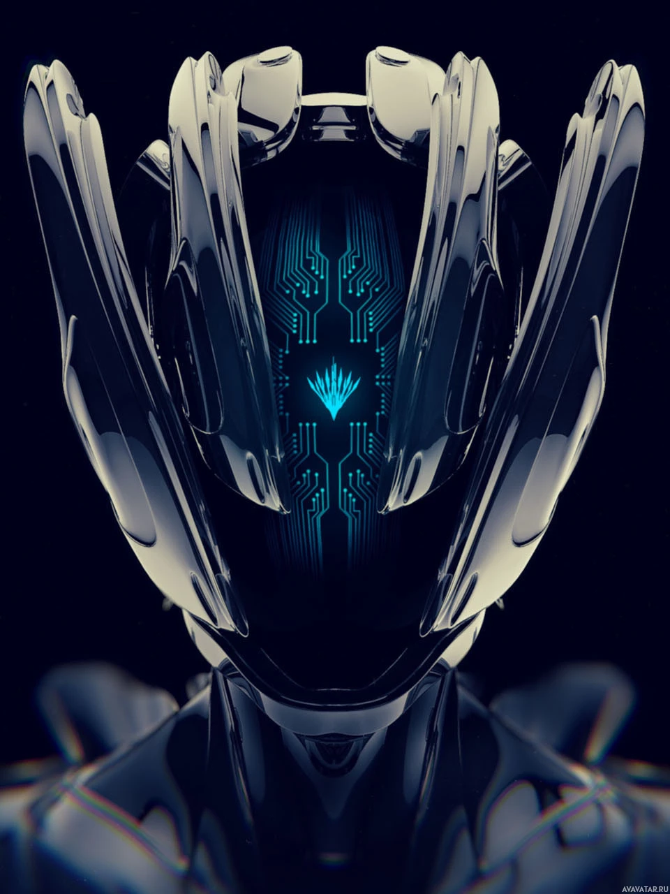 advanced technology or possibly a conceptual representation of artificial intelligence. The overall aesthetic is futuristic and gives the impression of a cybernetic being, often associated with themes in