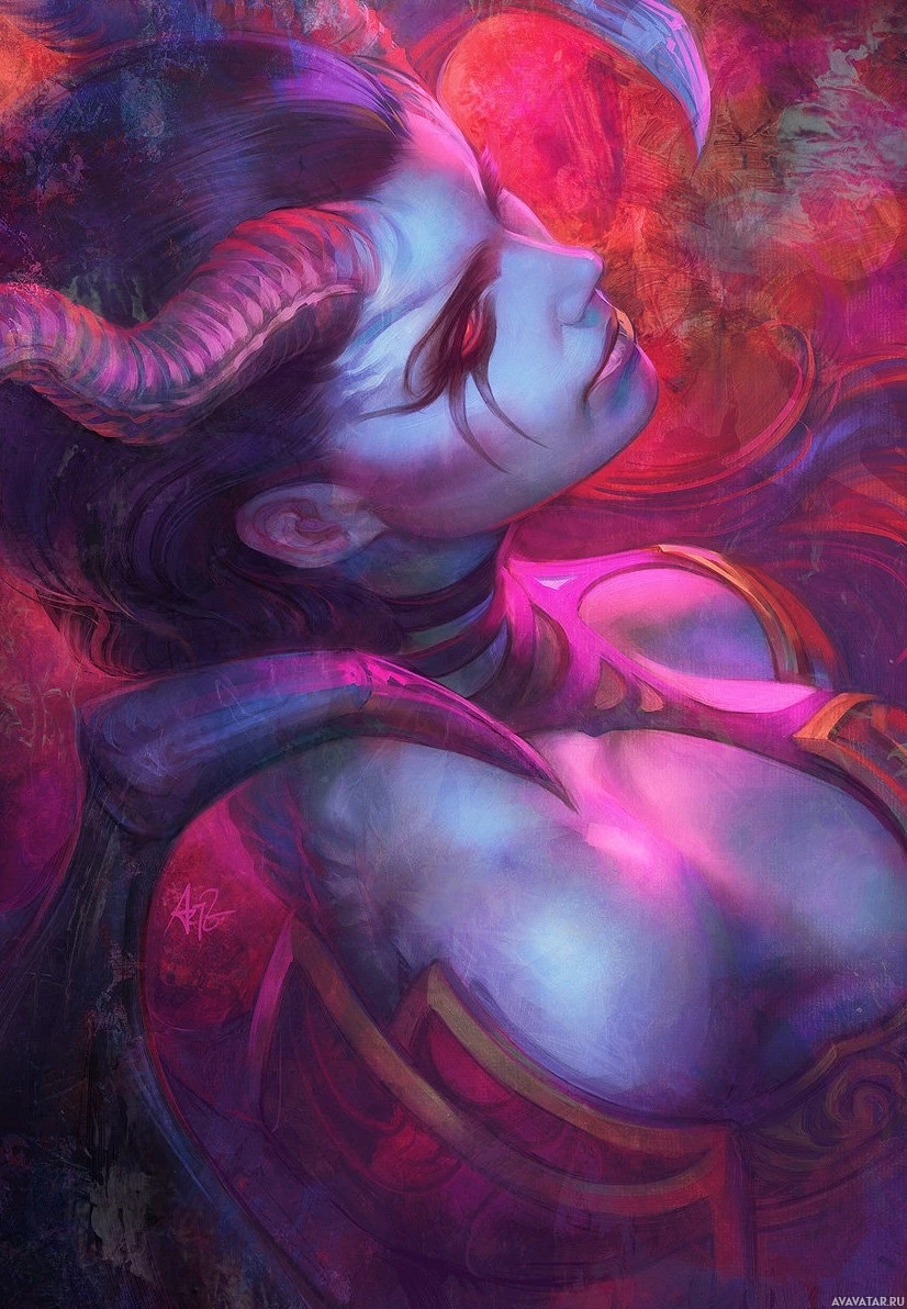 Queen of Pain from the game Dota 2. She is portrayed with horns on her head, representing her demonic nature, and she has