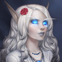fantasy character. She has pale skin, long