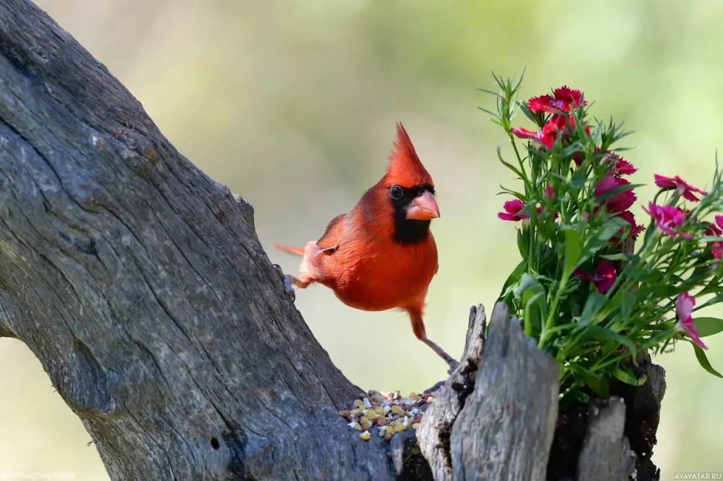The image shows a red cardinal perched on