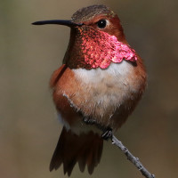 iridescent colors of red, green, and purple, which are characteristic of many hummingbird species. The background appears to be