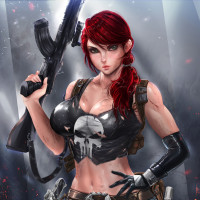 an underground bunker or stronghold. The artwork has a dynamic and intense feel, possibly indicating that this character is involved in some sort of action-