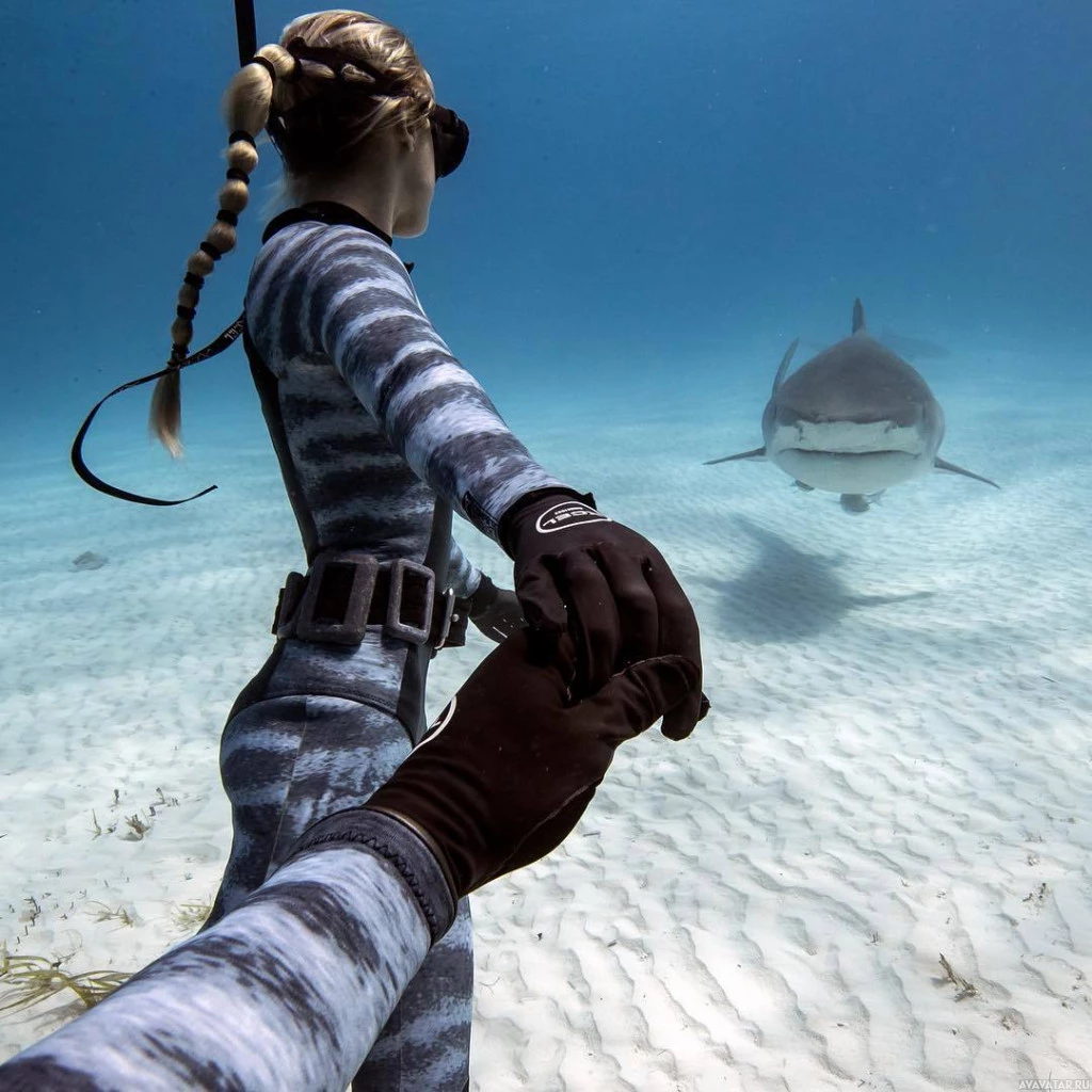 the marine life, suggesting a moment of connection with nature.