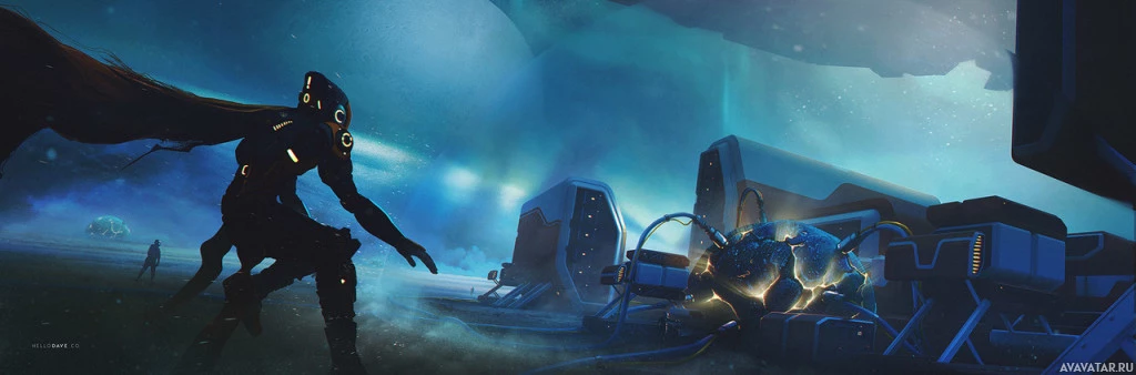 Изображение выглядит как скриншот из видеоигры. Он показывает персонажа на переднем плане, глядя на другую фигуру вдалеке, которая может быть компаньоном или противником. Обстановка кажется антиутопической или постапокалиптической средой, с промышленными структурами и мусором, разбросанными вокруг. Атмосфера опустошена, предполагая, что это может быть сцена из научно-фантастической игры.
