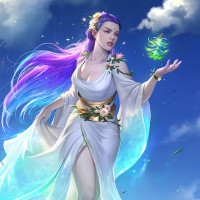 a serene expression and seems to be casting magic or performing some sort of ritual or enchantment.