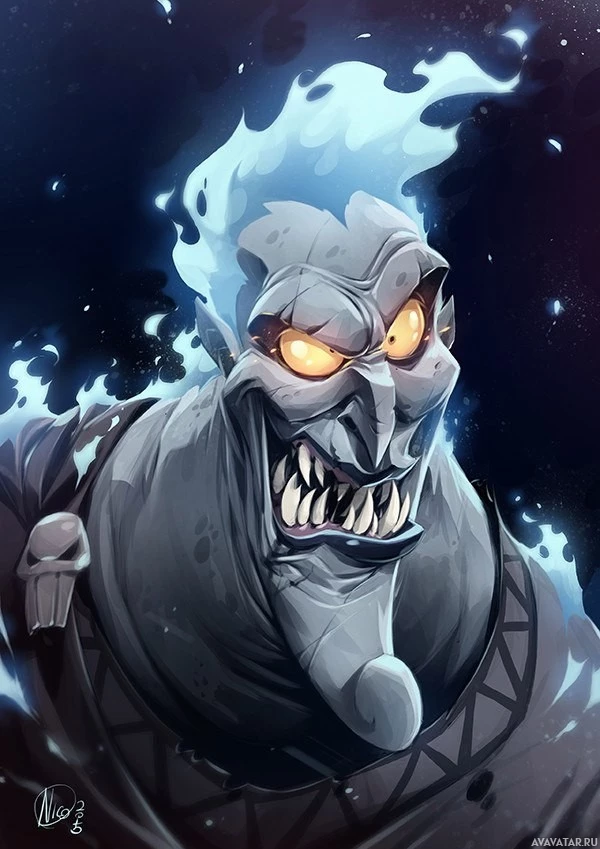 a menacing expression and flames around him, suggesting he might be some sort of demon or evil entity in the context of the game. He has horns on his head and seems to be casting or emanating an energy that resembles flame. The art style and color scheme are vibrant and detailed, indicative of high-quality animation typically found in contemporary