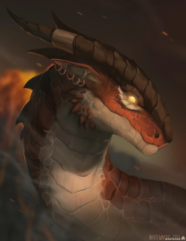 The image shows a fantasy illustration of a dragon. The dragon is depicted with scales that appear to be made up of