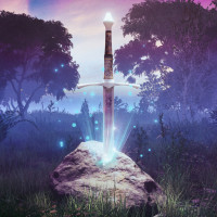 a rock with a sword embedded into it. The sword has