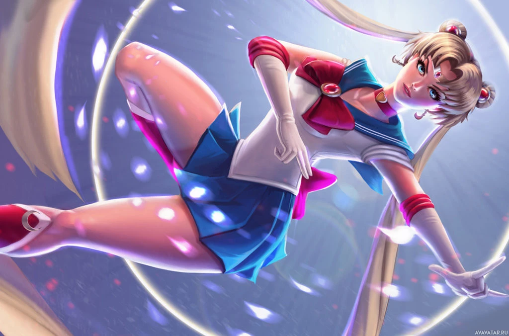 an animated character, commonly known as Sailor Moon or Serena Tsukino from the "Sailor Moon" franchise. She is shown in her Sailor Scout form, complete with