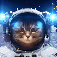 space exploration or adventure. The style of the image is humorous and creative, combining elements of a serious astronaut mission with the unexpected sight of a cat dressed in
