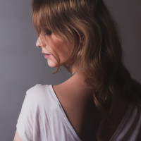 Картинка показывает женщину сзади, отводя взгляд от зрителя. Она имеет закрытые глаза и находится в созерцательном или интроспективном состоянии. Ее осанка слегка наклоняется вперед, а ее рука опирается на поверхность или стол. Она носит верхнюю часть плеча, предлагая непринужденный, но элегантный стиль. Освещение и фокус создают вокруг нее спокойную и безмятежную атмосферу.