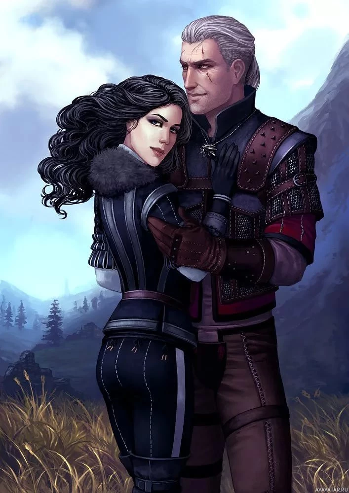 Wild Hunt." The character on the left is Yennefer, a sorceress known for her intelligence and complex