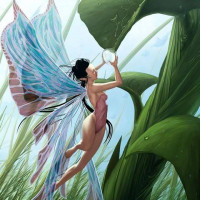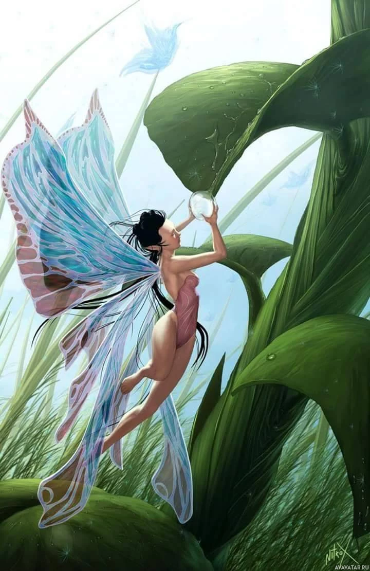 a fantasy scene with a fairy-like character. This character is portrayed as