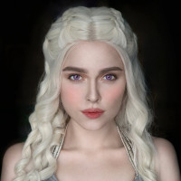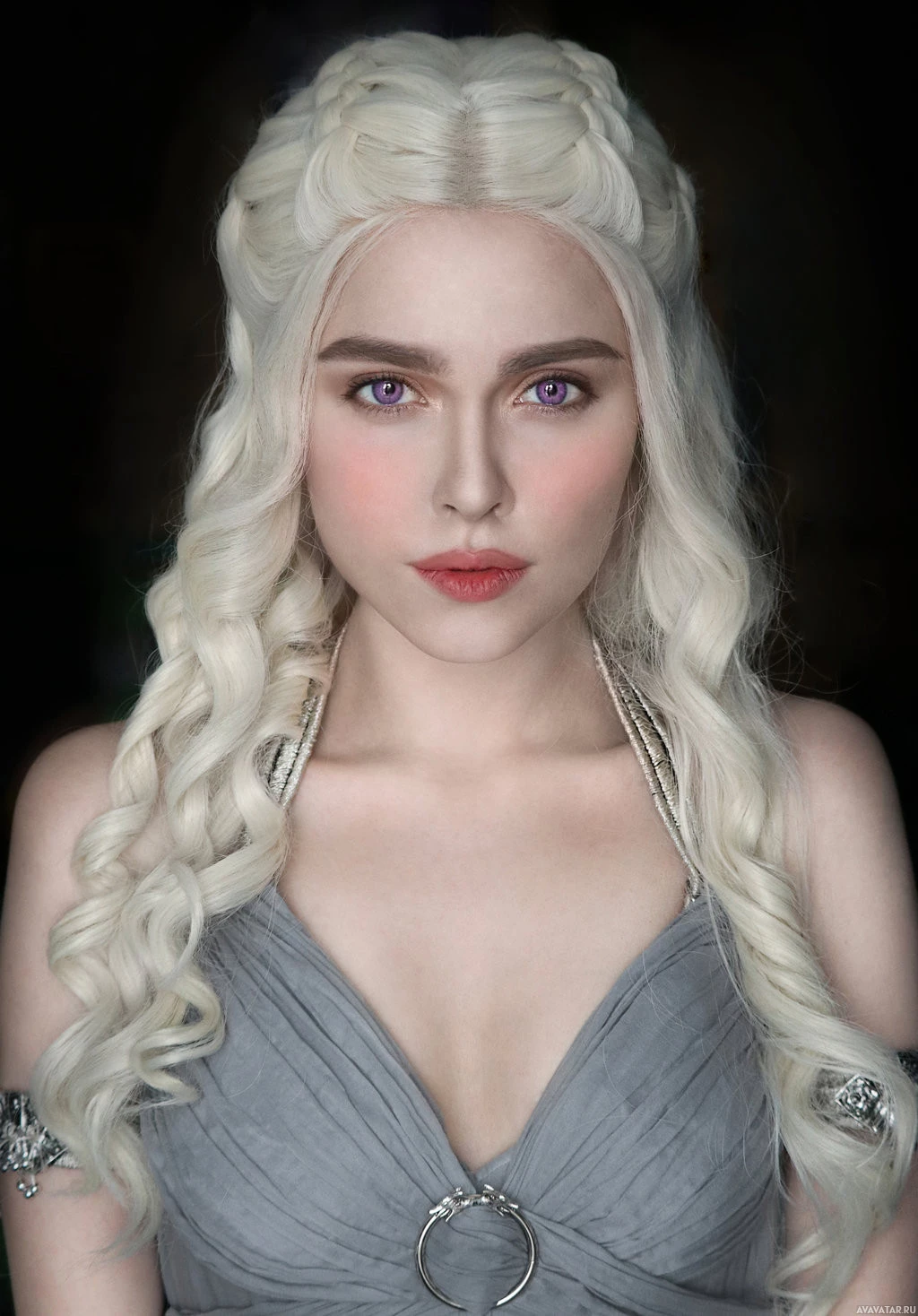Daenerys Targaryen from the television series "Game of Thrones." They are dressed in costume, complete with long