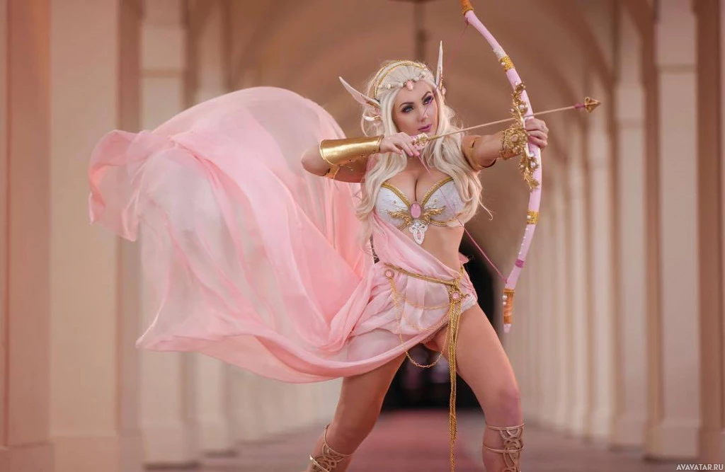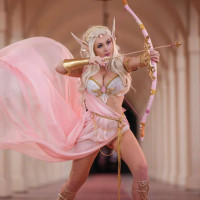 The image shows a person dressed in fantasy or elf-inspired attire, including long