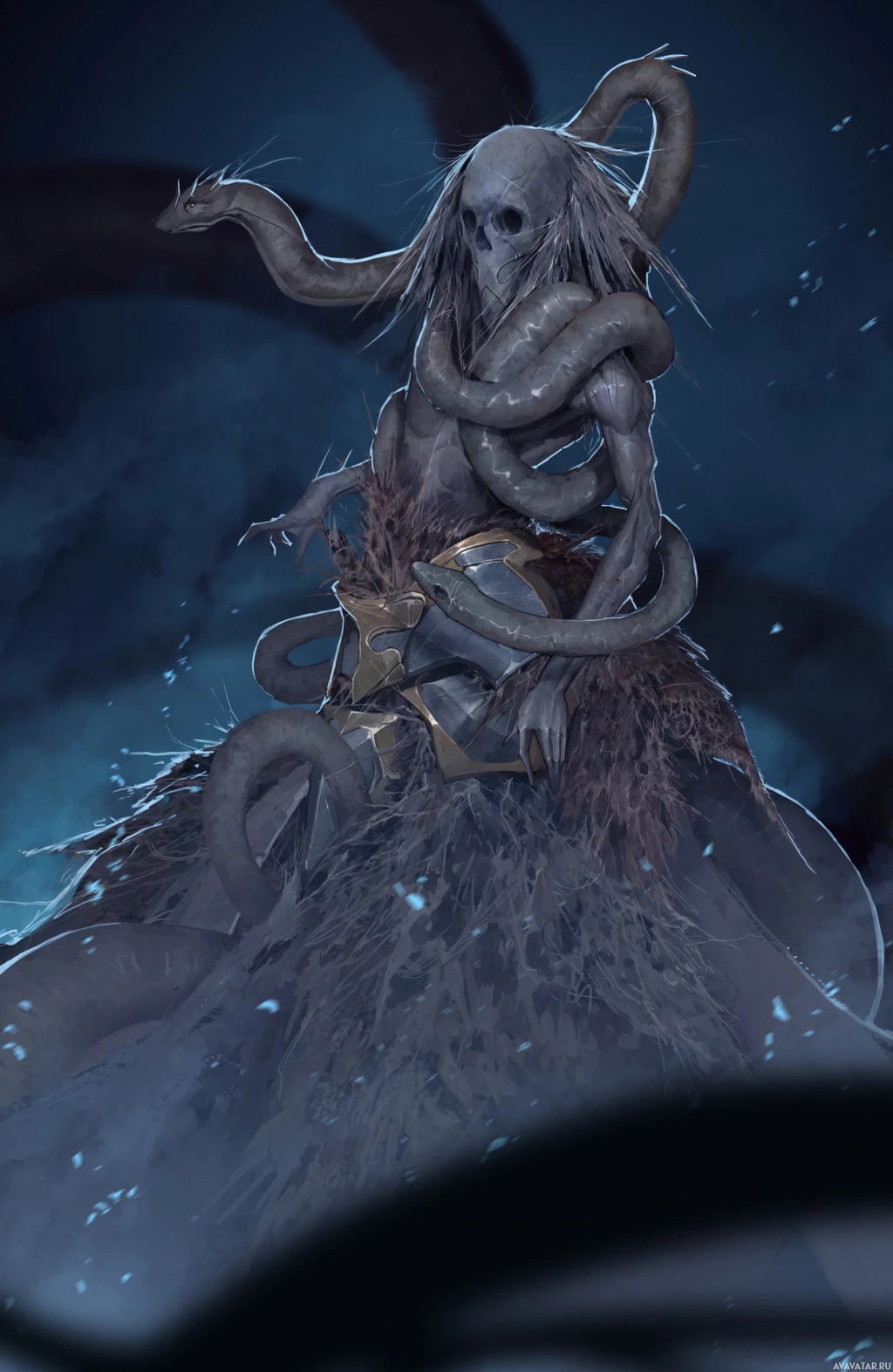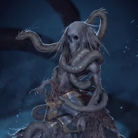 The image depicts a fantasy or horror-themed character. The creature has the upper