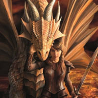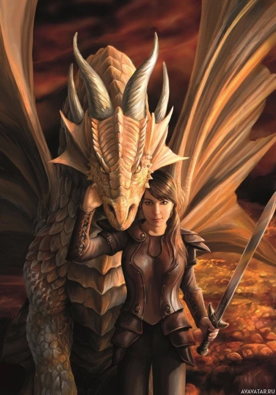 In the image, you see a fantasy-themed illustration featuring a girl and a dragon. The girl is dressed in armor, suggesting she might be a warrior or guardian of some sort. She holds a sword in her right hand, which further emphasizes her