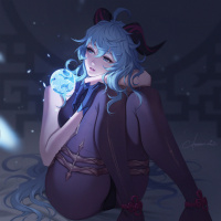 video games like "Genshin Impact." The overall tone of the artwork is soft and somewhat moody, with a focus on the character's