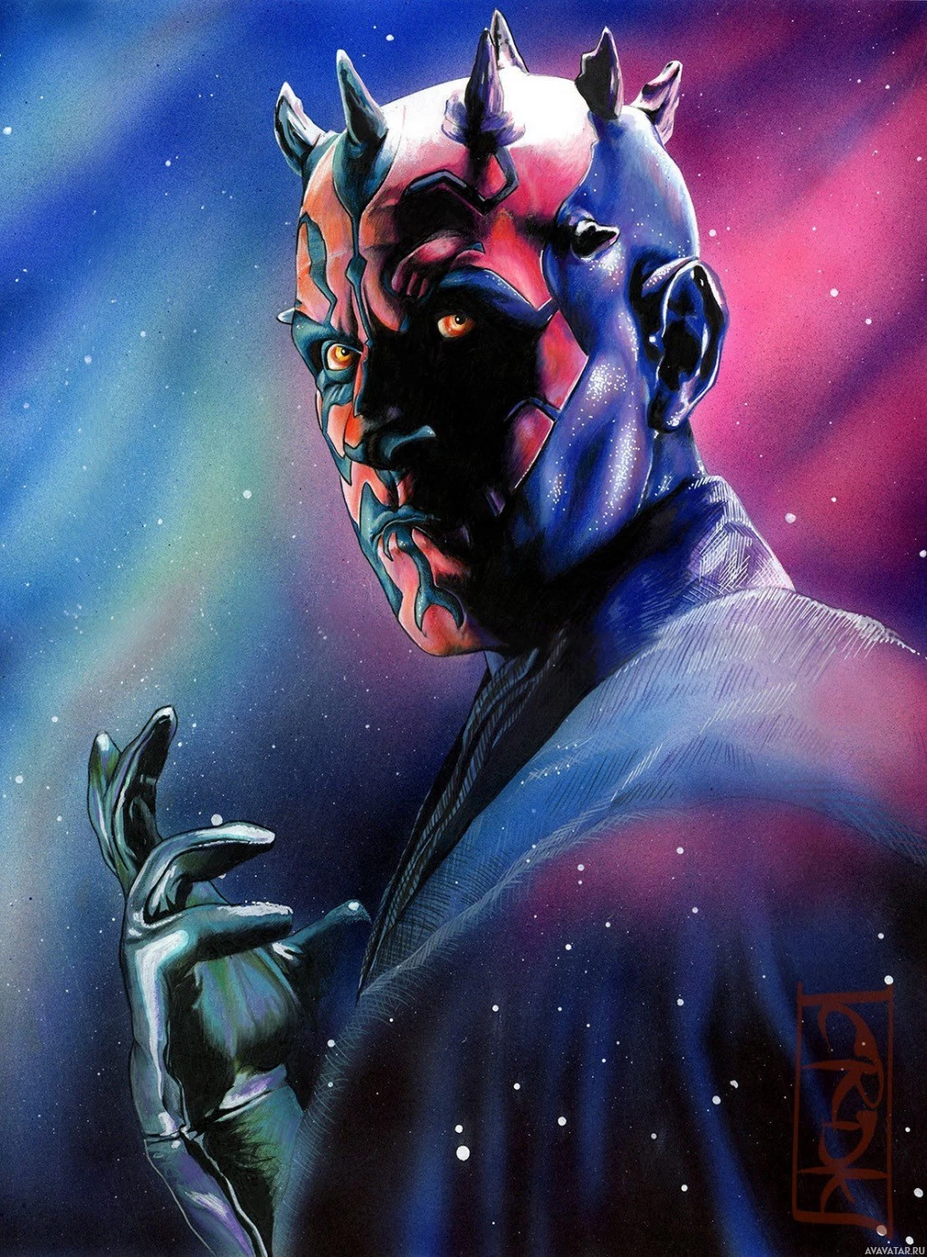 the Star Wars franchise, known as Darth Maul. He is shown with his distinctive