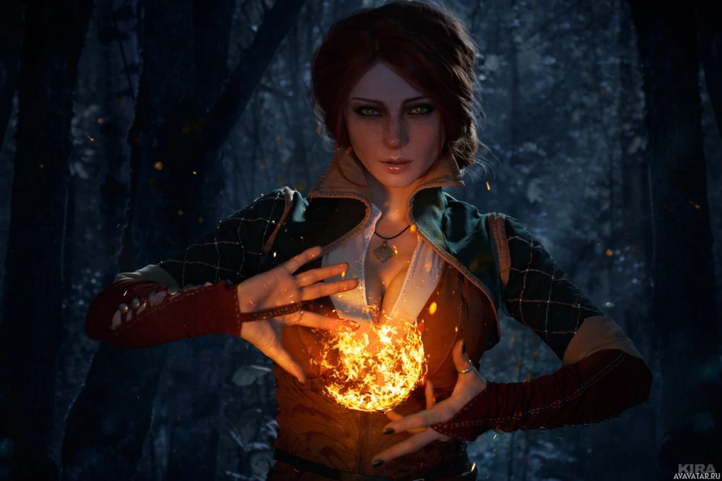 the video game "The Witcher 3: Wild Hunt," specifically Triss Merigold. She is depicted with