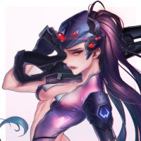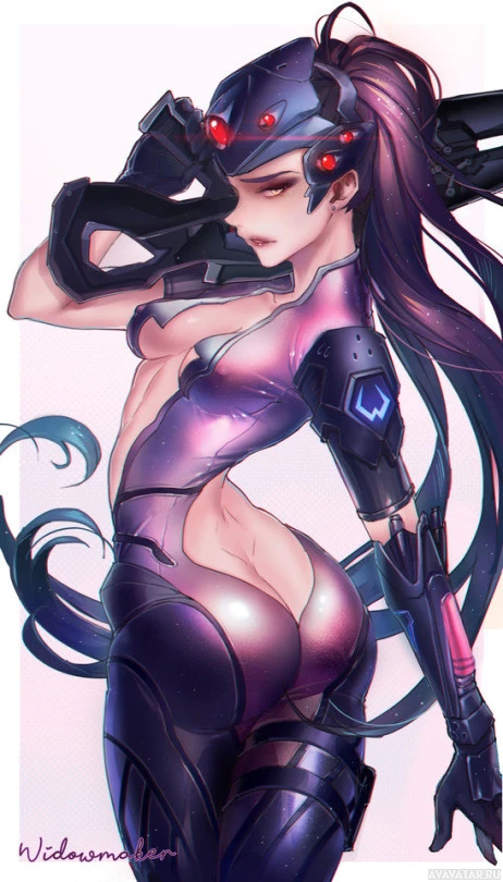 The image shows a stylized, animated character that appears to be Widowmaker from