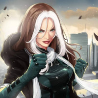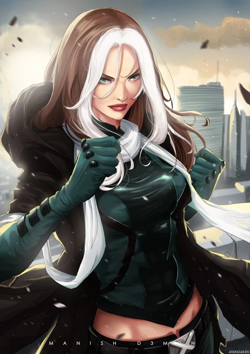 a female character who appears to be inspired by the character known as Rogue from the X-Men comics. She is shown in