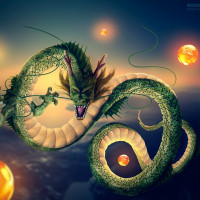 The image shows a fantasy-themed illustration of a dragon. This particular depiction is inspired by the character Shenron from the "