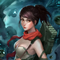 a female character. She is depicted with a slim build, and her attire includes what appears to be