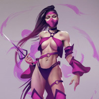 The image depicts a digital artwork of the character Mileena from the Mortal