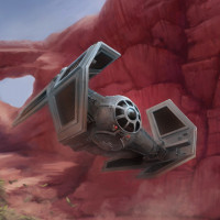 The image depicts a TIE Interceptor, which is a type of starfighter from