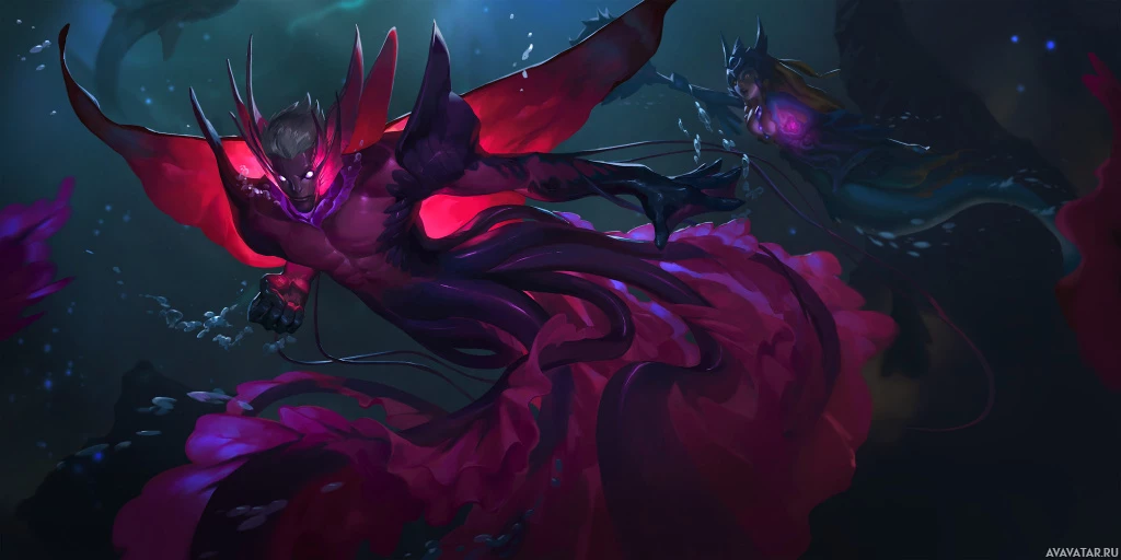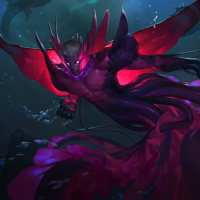 the video game "League of Legends." The character is depicted with fantastical elements, such as wings and a tail, which suggests they might have some sort of mythical or magical nature in the context of the game. They are shown in an action pose, which could imply that this is a promotional image for the game or a piece of