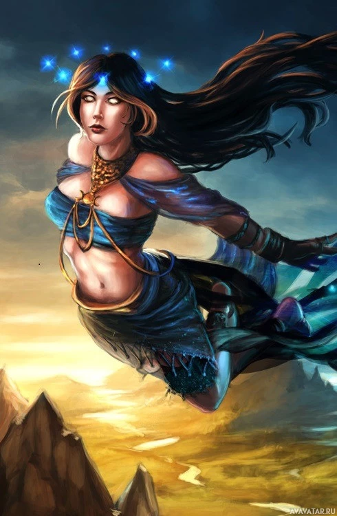 a fantasy character. It features a woman with long