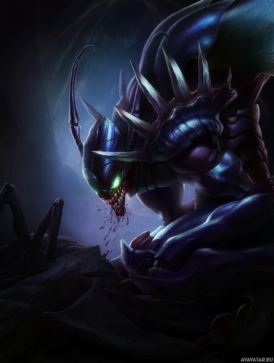 League of Legends" universe, which is known for its diverse roster of monstrous characters. The setting appears to be dark or moody, possibly representing an underground environment or