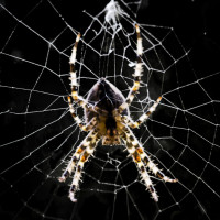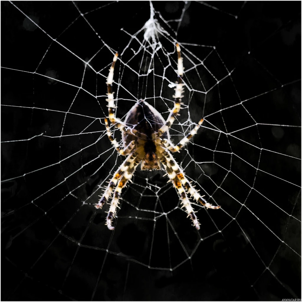 the center of a web. It appears to be a black widow spider, identifiable by its distinctive