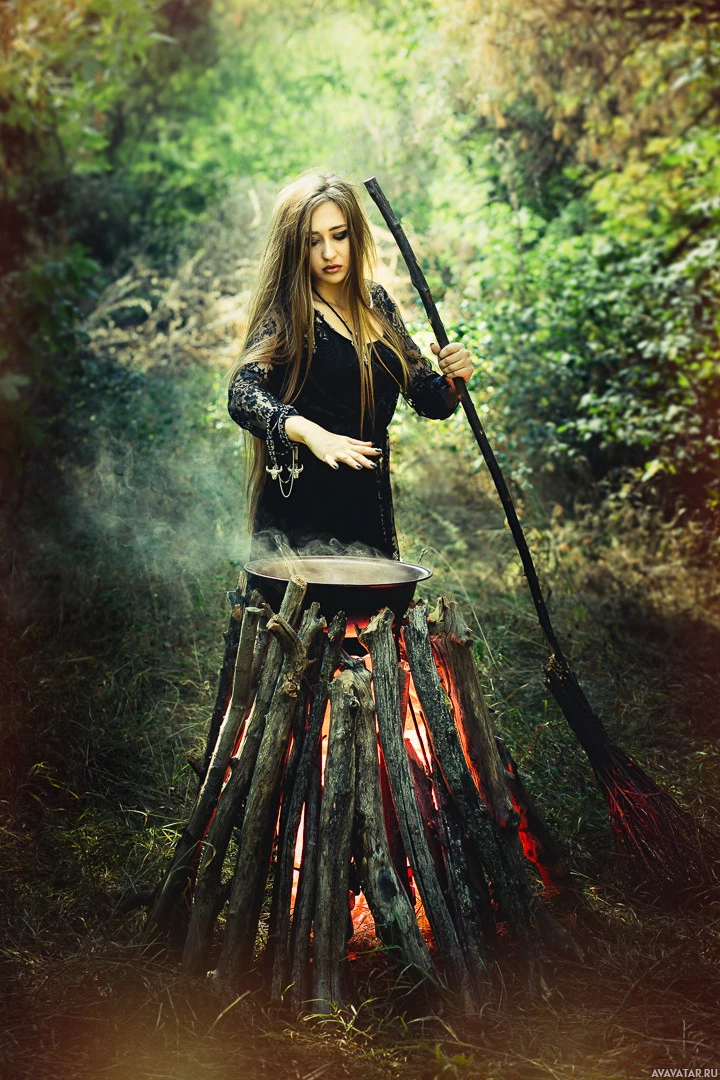 long hair that flows down to the ground. In her hands, she holds what appears to be a wand or a stick, which she uses as part of an activity involving the fire. The setting looks like