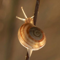 The image shows a snail, which is an animal known for its slow and deliberate movement. Snails are typically identified by their slug-like