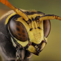 markings on the wings and face. Wasps like these are known for their distinctive appearance and can be identified by their