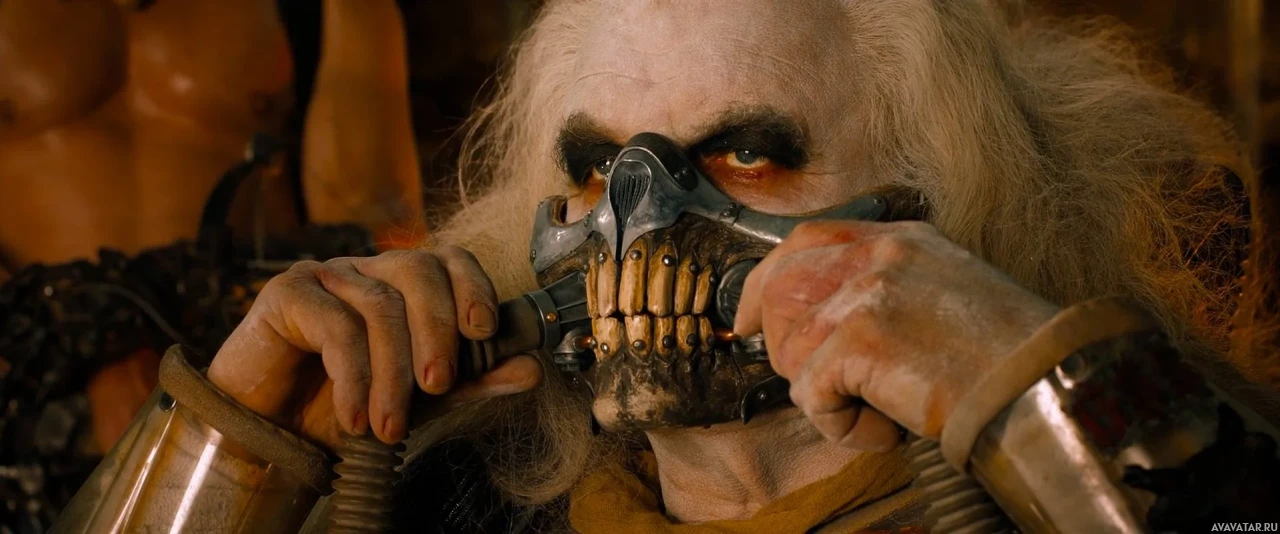 Mad Max: Fury Road." This character is known for his distinctive appearance and attire. He has long, unkempt hair, a beard, and is wearing