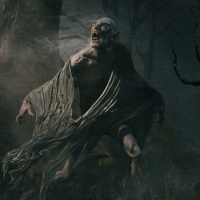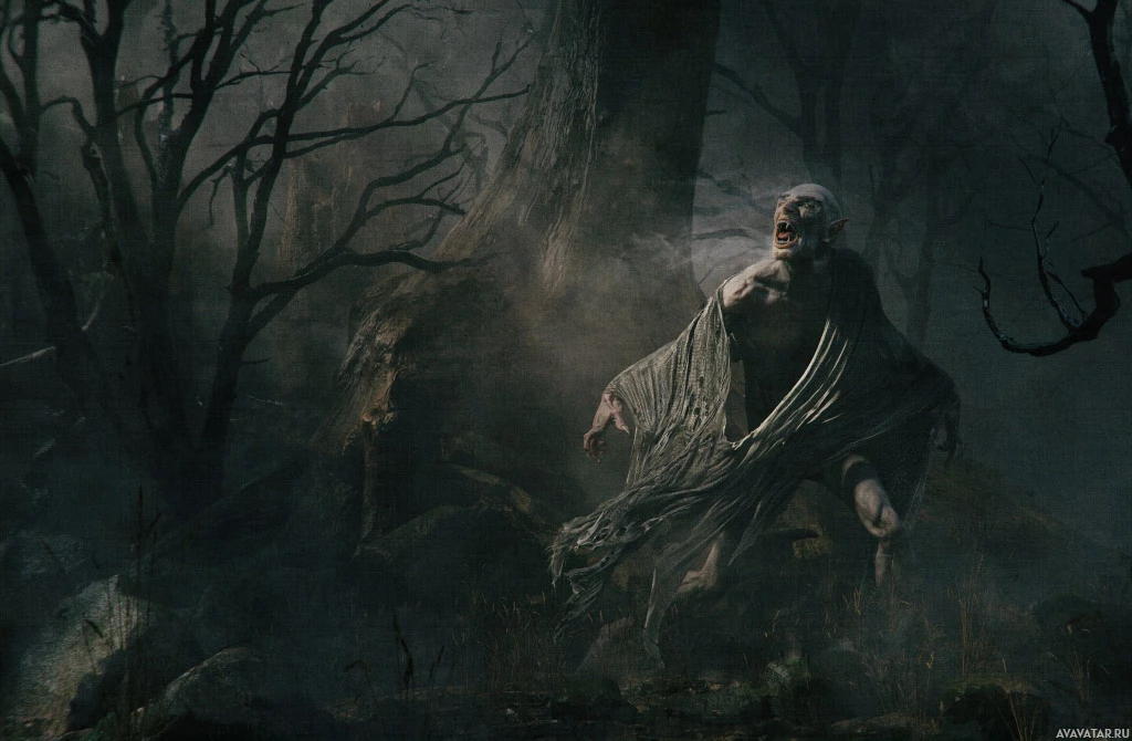 The image depicts a figure that appears to be a vampire in a horror-themed setting. The individual is surrounded by trees and shrubs, which have a decaying look, suggesting a dark or