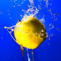 type of imagery is often used to show the juiciness or freshness of the fruit through the splashing water effect.