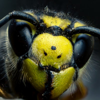 the artificial lighting that illuminates the bee's face.