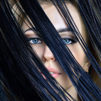 the close framing of the photograph, which focuses on her face. The style of the image suggests it could be